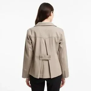 This tailored jacket pairs beautifully with neutral trousers, dark jeans, or pencil skirts. Its structured cut enhances any silhouette while maintaining a soft, wearable feel. A classic essential for transitioning seasons and adding polish to every look.