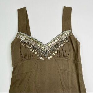 Together Lagenlook Boho Hippie Olive Green Metal Sequin Distressed Ruffled Dress