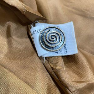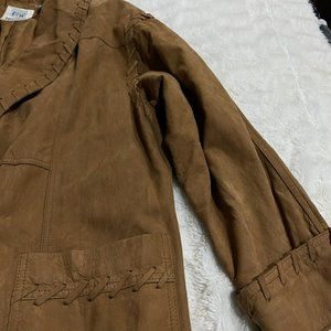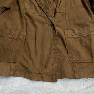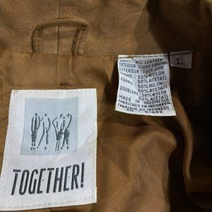Together Women's Brown Leather Shawl Lapel Single Breasted Blazer Jacket Size L.