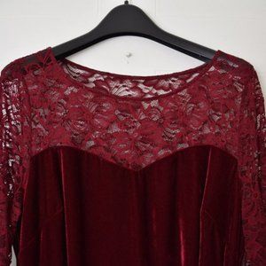 Together Women's Velvet & Lace Burgundy Dress -Size 16 -New!