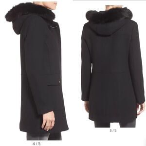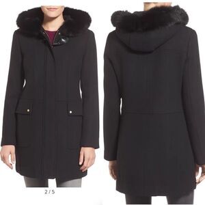 silky fox-fur ruff adds luxe treatment at the hood of a twill-woven duffle coat crafted from a warm wool blend and detailed with a single toggle closure.