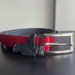 Size XL. Length 40”. Colors: Red and Black with silver buckle. Never used. In great condition.