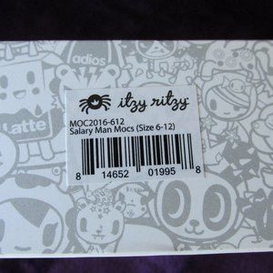 Tokidoki Itzy Ritzy Salaryman Blue Leather Baby Moccasins Size 6-12 Months