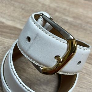 Toledano White Genuine Leather Belt Gold & Silver Toned Buckle Size S
