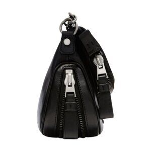 This chic crossbody bag is crafted of luxuriously textured calfskin leather in black. The bag features a leather crossbody strap with brass hardware, a wrap-around zipper along the base of the bag, and an additional zipper on the crossover flap. The bag opens to a black microfiber interior with a patch pocket. This petite shoulder bag is perfect for just the essentials, with the cutting edge style of Tom Ford!