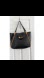 A beautiful tote bag for everyday - done in a grained black leather with gold hardware. The zippers are purely decorative, but the clasp at the front opens to a pocket at the front, which is great for keeping everyday necessities at the ready (tissues, your phone, etc). The interior features an ultrasuede lining, with a zip pocket for items you need to keep secure, lipstick, keys, etc, and some slip pockets on the other side, for business cards, or your phone. It's great for carrying on the shoulder or on the arm.