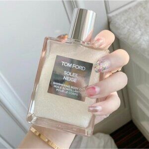 Fragrance Description: Silky, lightweight, and illuminating, Tom Ford Shimmering Body Oil captures the sultry effect of light-reflective, lucent skin with shimmers of platinum leaf and tempts the senses with the citrus floral musk of Private Blend Soleil Neige. The escapist fragrance mimics the serene shimmer of sun on snow.