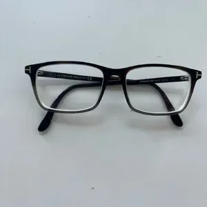Elegant Tom Ford eyewear with a tortoise shell pattern. Rectangular frames with signature branding on the arms.