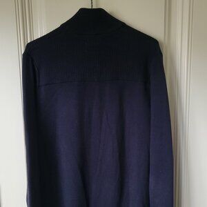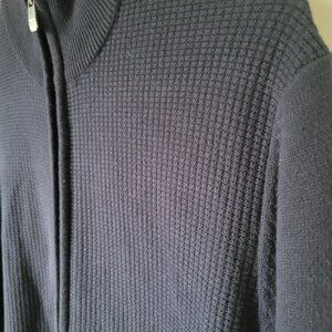 Tom Tailor, EUC, Size XL, (fits more like a L according to P to P measurements) Navy Blue Full Zip Cardigan, 100% Organic Cotton, textured at front, part of back, and snoothe sleeves per pics. Contrasting interior collar. Ribbed collar, cuffs and hemline. No visible marks, stains or tears. In almost new condition!!