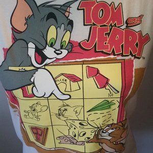 Tom and Jerry white t-shirt. It is a children's size 14 but will fit a women size small. Unisex item EUC
