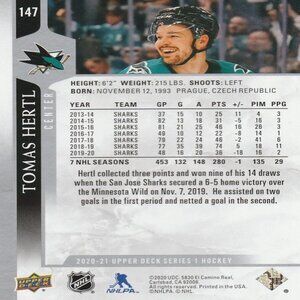 Tomas Hertl - 2020/2021 Upper Deck Series 1 Hockey Card