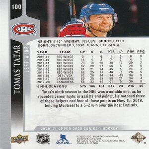 Tomas Tatar - 2020/2021 Upper Deck Series 1 Hockey Card