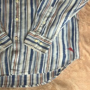 Tommy Bahama 100% Linen Striped Long Sleeve Button Down Pastel Loose Fit sz L