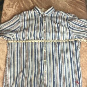 Like new! Sophisticated with soft stripes and an embroidered fish at bottom left front. Loose fit for comfort and easy wear.