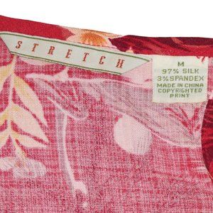 Tommy Bahama 100% Silk Floral Coral Sleeveless Dress Size M. A simple A line shift dress with scoop neckline , slight stretch, back peep hole, button closure. Has small spot close to left front armhole as shown in photo, otherwise in great pre - owned condition. Check tags in photos for fabric content and washing instructions. Pet and smoke free home.