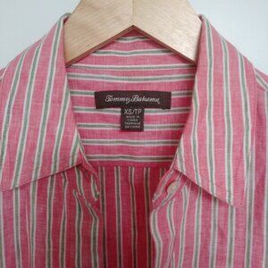 Tommy Bahama 100% linen pink green stripes button down size XS