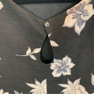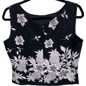 Elegant black tank top with white floral design. Perfect for casual outings.
