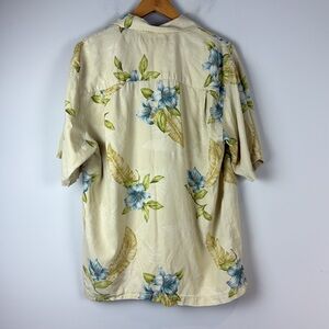 Tommy Bahama Cream and Blue Floral Shirt Silk Size Large