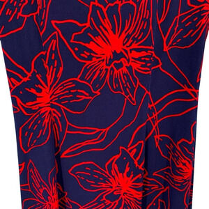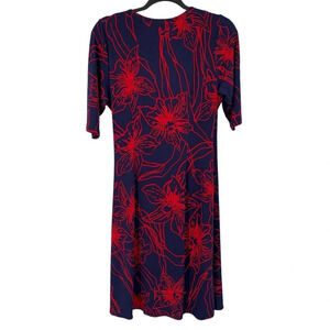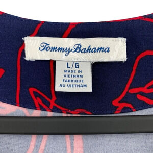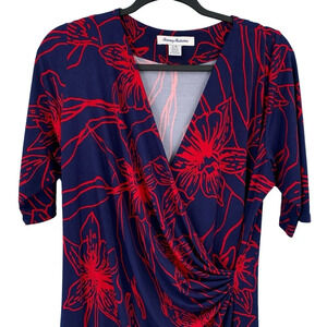 Tommy Bahama Faux Wrap Dress Womens Large Blue Red Floral Slinky Stretchy Modest