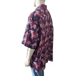 Colour: Distinctive pattern of red, pink, white, and blue palms on a navy blue background