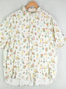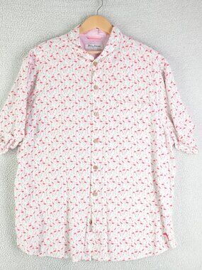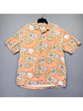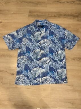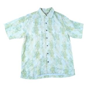 Tommy Bahama Hawaiian Shirt Fenu Fronds Tiki Camp Textured Cotton Floral Pattern