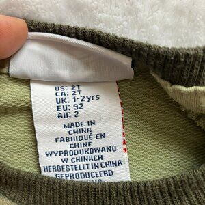 Green and brown camo long sleeve tee from Tommy Bahama, size 2T. Well-loved with wash fade and pilling, but still has lots of playtime left! Made from a stretchy cotton blend, it’s perfect for layering or wearing solo.