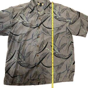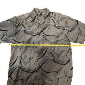 Tommy Bahama Men XL Short Sleeve Button-Down Shirt 100% Silk Gray Black Leaf