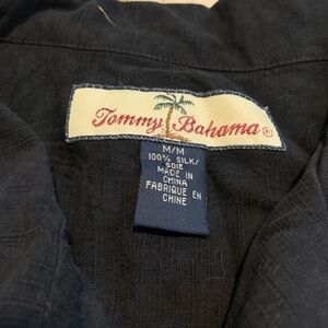 Tommy Bahama, silk, button-down, short sleeve, black, men's, Hawaiian shirt, vacation, resort wear, classic, casual, M, medium, pre-loved, excellent condition.