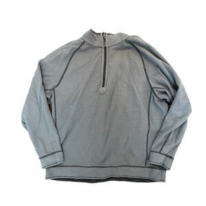 Tommy Bahama Mens Reversible Sweater Quarter Zip Mock Neck Long Sleeve Gray L