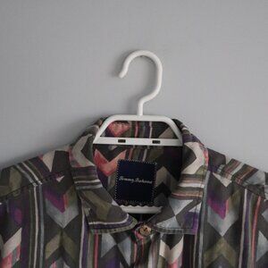 Tommy Bahama Mens Silk Lrg Island Zone Geometric Aloha Button Down Collared Top