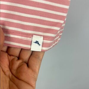 Tommy Bahama Pink & White Stripped Preppy Short Sleeve Tee Size Large
