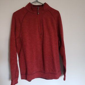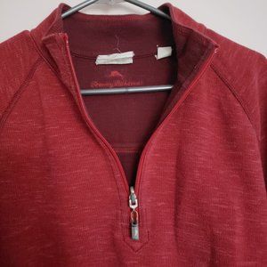Tommy Bahama Medium Reversible 1/2 zip long sleeve medium sweater. Has never had tags removed so has not been worn on reverse side - made of cotton lyocell. Very nice reddish color, and if reversed a wine color!! Measurements laying flat are 23" armpit to armpit and 25" from shoulder to bottom hem.