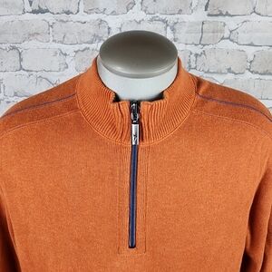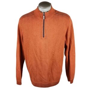 Tommy Bahama Reversible 1/2 Zip Sweater Burnt Orange Taupe Heather Size