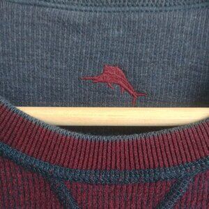 Tommy Bahama Reversible Mens Cotton Sweater Navy Blue Burgundy Red