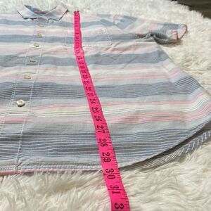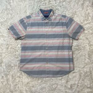 Tommy Bahama Shirt 100% Cotton Stripe Pink Blue Short Sleeve Hawaiian Camp Fishi