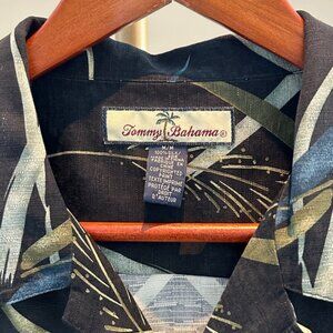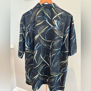 Tommy Bahama Silk Tropical Short Sleeve Button Down Shirt Black Pattern Men’s Me