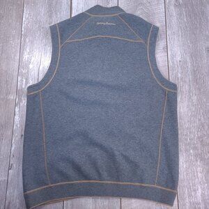 Tommy Bahama Sweater Vest Mens XL Gray Beige Cotton Full Zip Reversible Jacket