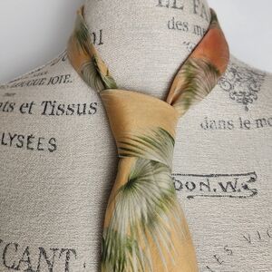 Creamy Tan & Green Banana Palm Leaf Tropical Hawaiian Pattern Men's Tie, by Tommy Bahama.