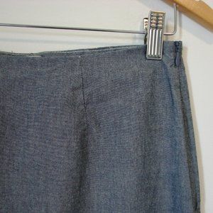 - This is such a cute skirt for the summer!!! It looks like denim but it's really a lighter fabric almost like a linen. Has a side zipper and cute ruffles along the
