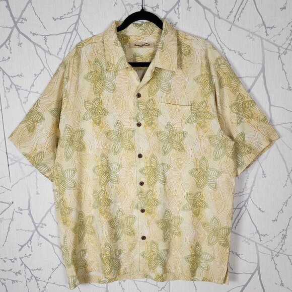 Tommy Bahama Yellow Floral Print 100% Silk Camp Shirt
