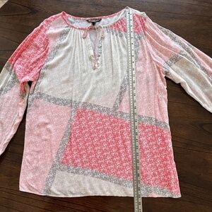 Tag says size is large; however, please review measurements below to ensure a proper fit for you.