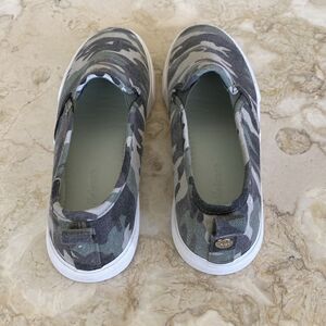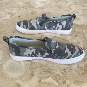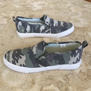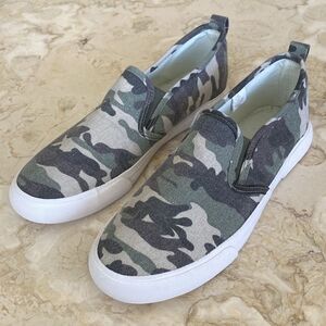 These Tommy Bahamas camo slip on sneakers are so comfortable!! With a soft, cushioned footbed it feels like you’re walking on pillows. Heavy camo print canvas, with stretchy gusset panels, white rubber soles.