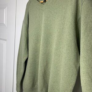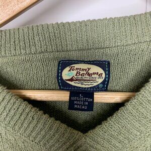 Tommy Bahama Men’s Green V-Neck Sweater – 100% Cotton – Soft Classic Comfort