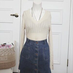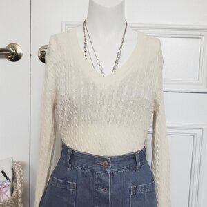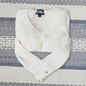 Tommy Hilfiger 100٪ Pima Cotton V Neck Cable Knit Pullover- Size M