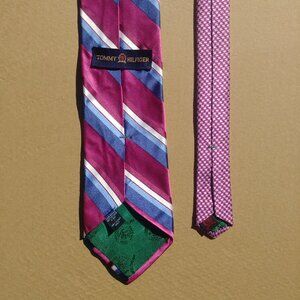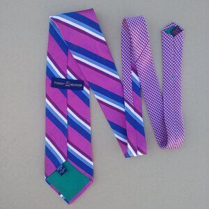 Tommy Hilfiger 100% silk made in USA striped tie magenta blue white