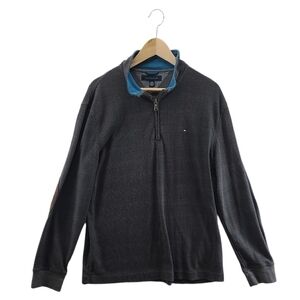 Tommy Hilfiger 1/4 Quarter Zip Long Sleeve Mock Neck Grey/Blue Sweater