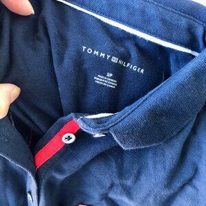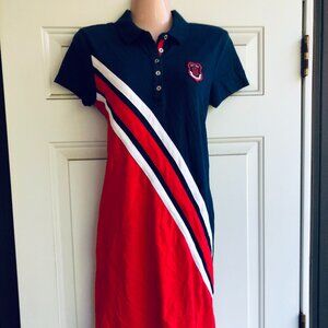 Authentic Tommy Hilfiger “Est. 1985” polo dress in navy, red & white stripe design. Slim fit, short sleeves, polo collar. Size S/P.