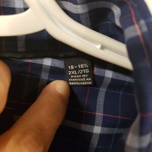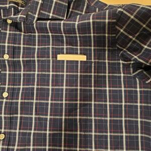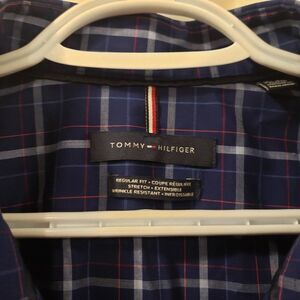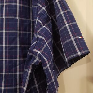 Tommy Hilfiger 2XL Men's Blue Orange Plaid Short Sleeve Collared Shirt