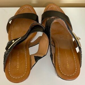 Tommy Hilfiger| Black FauxLeather ‘Mili’ Cork Wedge Sandal Shoe 4” Heel Sz 8.5