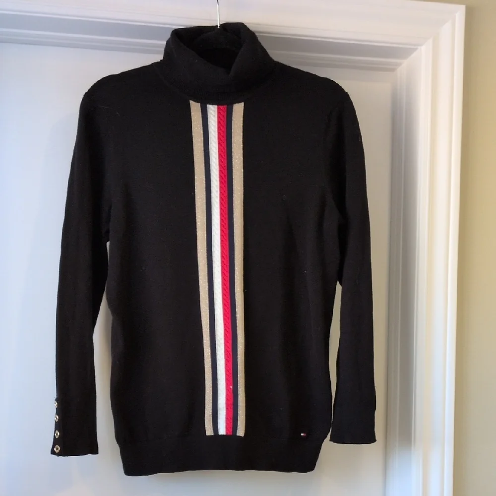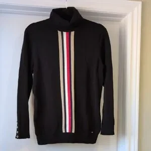 Tommy Hilfiger Black Turtleneck Sweater with Stripes